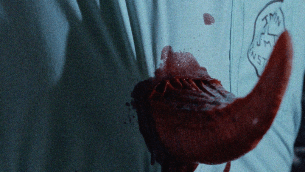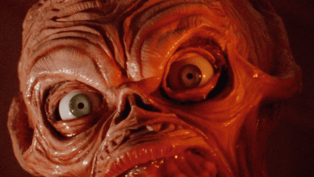 Film bardziej niż horrorem jest zamkniętą w czterech ścianach groteską – lepki klimat miesza się tu z dialogami, które brzmią jak improwizowane kłótnie po trzeciej nad ranem. Zamiast wielkiej grozy dostajemy serię absurdalnych sytuacji, teatralne reakcje i efekty specjalne, które z dumą zdradzają swoje niskobudżetowe pochodzenie. To właśnie ta surowość – gumowa, klaustrofobiczna i momentami zaskakująco zabawna – buduje urok filmu, który ogląda się trochę dla fabuły, a trochę dla samego doświadczenia „co oni tu właściwie zrobili?”.